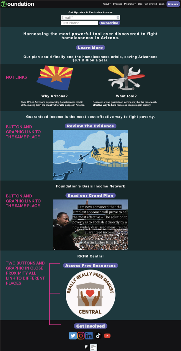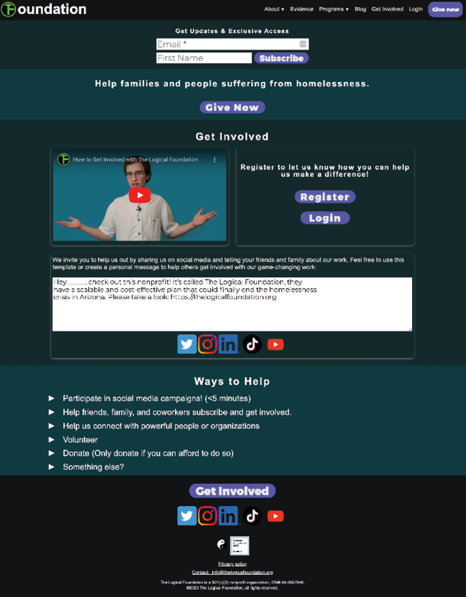 Another important issue with this logo treatment is that it obscures two of the three words in the organization name: “The” and “Logical,” leaving only “oundation” which feels like a typo. Even worse, in the html, the very first text on every page is “oundation” which won’t help people find this page if they’re searching for your organization. Consider developing an updated logo and type lockup.