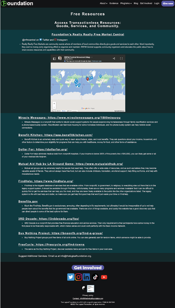 The Really Really Free Market icon should probably link to the resources page if that page remains, as that’s the page that holds the RRFM content. It should be made more obvious that the graphic is a clickable banner.